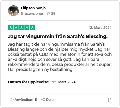 Även människor som tidigare har haft dåliga erfarenheter av CBD ÄLSKAR Sarah’s Blessing. Våra gummisar innehåller endast rena och ekologiska ingredienser och är utformade att hjälpa dig till ett milt, avslappnat och euforiskt tillstånd.